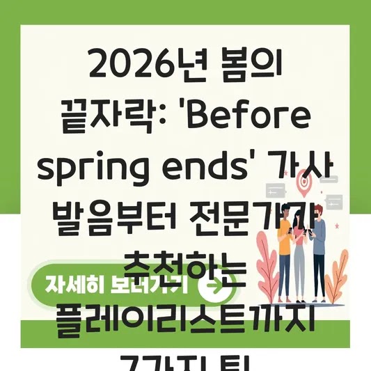 ‘Before spring ends’라는 노래는 우리에게 봄날의 추억을 정리하고, 다가올 계절을 맞이할 준비를 하라고 조용히 속삭입니다. 2026년의 봄이 끝나기 전에, 이 노래를 통해 자신만의 감성 관리 프로세스를 만들어 보세요.