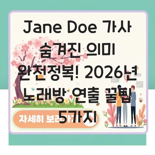 기업 컨설팅 전문가인 저는 일상생활에서도 비효율을 제거하고 최적의 결과를 내는 것을 좋아합니다. 특히 취미 생활에서는 '정보력'이 만족도의 성패를 가릅니다. 최근 회식 자리에서 'Jane Doe' 노래를 완벽하게 소화해내는 후배를 보며, 단순히 노래를 잘하는 것을 넘어 '노래의 의미'를 정확히 알고 연출하는 것이 중요하다는 것을 깨달았습니다. 마치 기업 컨설팅에서 고객사의 숨겨진 니즈를 파악하는 것과 같죠. 단순히 멜로디만 따라 부르면 노래방 점수는 높을지 몰라도, 청중의 몰입을 이끌어내기는 어렵습니다. 이 글은 'Jane Doe'의 숨겨진 가사 의미를 완벽하게 해부하고, 이를 바탕으로 노래방에서 미스터리한 분위기를 연출하는 실전 비법을 알려드립니다.