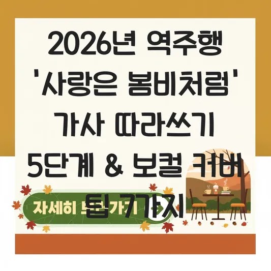 기업의 비효율을 제거하듯, 노래 커버의 비효율(무리한 고음, 어색한 감정선)을 제거하는 전략이 필요합니다. '사랑은 봄비처럼'은 특히 호흡과 감정 표현이 중요한 곡입니다. 다음 7가지 감성적인 보컬 커버 포인트를 숙지하면 훨씬 완성도 높은 커버를 할 수 있습니다.