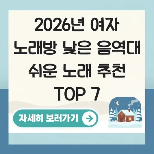 2026년 여자 노래방 낮은 음역대 쉬운 노래 추천 TOP 7